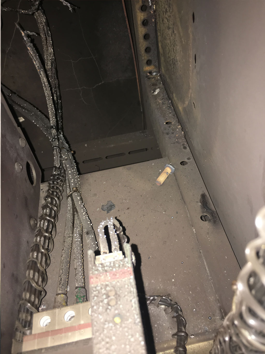 故障情況:箱式變電站低壓側電流互感器故障引發低壓側短路,導致變壓器AC相短路,現場一臺1000kva變壓器直接損壞,軸頭線圈直接熔斷。