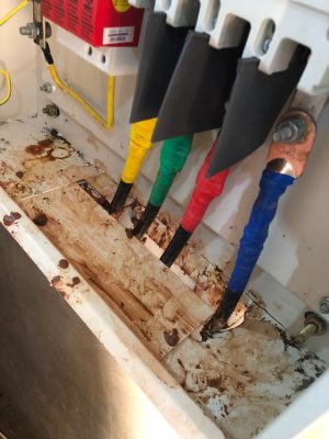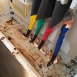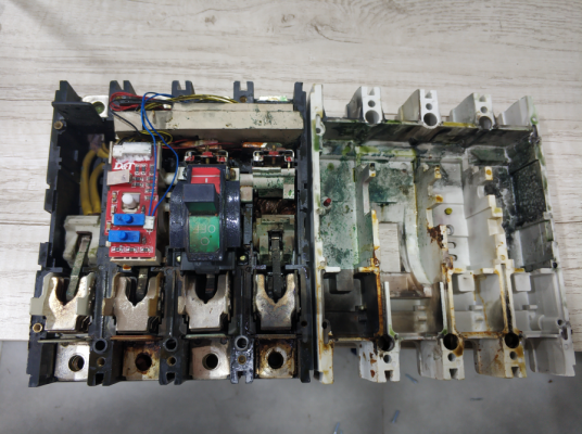 故障原因:因開發商未及時處理地面水漬,高溫天氣產生水蒸氣,水蒸氣至樓層頂部時產生凝露,水滴落至開關內部造成相對地,和相間短路造成開關損壞。再次,頻繁跳閘原因是,因水漬進入開關內部,開關保護回路電路板損壞,導致漏電保護功能動作,頻繁跳閘。