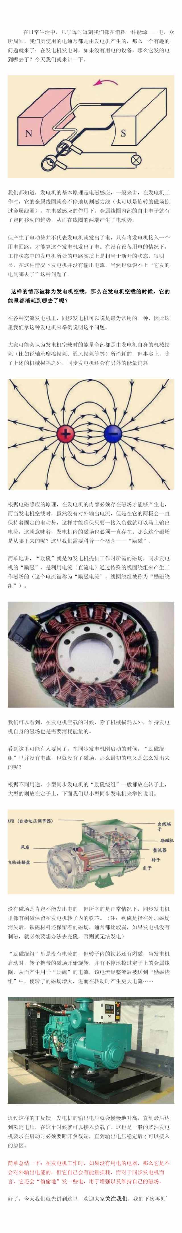 【在發(fā)電機發(fā)電時,如果沒有用電的設備,那么它發(fā)的電到哪去了?】在日常生活中,幾乎每時每刻我們都在消耗一種能源——電,眾所周知,我們所使用的電通常都是由發(fā)電機產生的,那么一個有趣的問題就來了:在發(fā)電機發(fā)電時,如果沒有用電的設備,那么它發(fā)的電到哪去了?戳圖看
