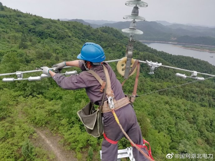 5月20日,國網丹江口市供電公司輸變電工程分公司員工不畏艱險,全力以赴在該市二道河村為新建35千伏丁土線安裝線路防振錘,安裝完畢后,能產生與導線振動相位相反的運動,從而使導線振動消除或減弱,進一步提升電網供電可靠性。