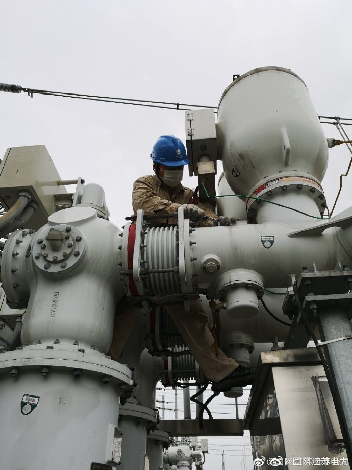 6月5日,在500千伏吳江變電站現場,國網江蘇檢修公司蘇州運維站變電修試二班班員正在開展220千伏GIS罐體連接發熱隱患消除工作。一絲不茍地處理發熱點,確保設備恢復正常。