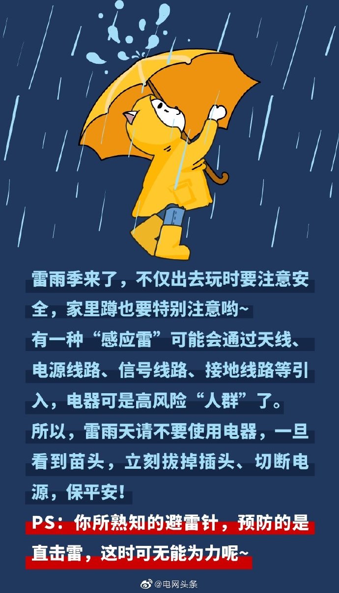 雷雨季來了,不僅出去玩時要注意安全,家里蹲也要特別注意呦~ ????