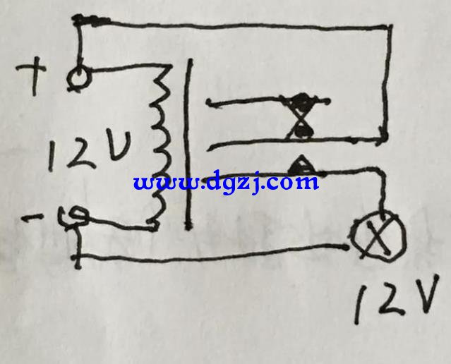 4、有種繼電器是12V直流供線圈作電源,但控制的用電器也是12V同一個電源,那就可從線圈一端的正極上與另一端開關點相連,當吸合時,直接起到12V開關作用,閉合后另一觸點也測到電壓。
