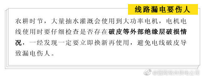 黃梅時節,雨水充沛,植被生長旺盛,農耕用電增多,為防止觸電安全事故發生,請務必注意用電安全,并將用電安全宣傳到身邊的朋友。