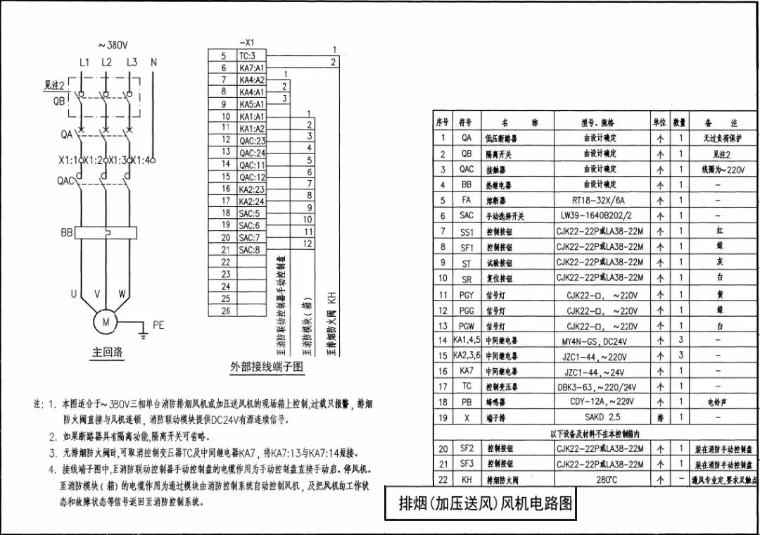 通過上述闡述以及分析,根據(jù)《火災(zāi)自動(dòng)報(bào)警系統(tǒng)設(shè)計(jì)規(guī)范》GB 50116-2013和國(guó)家標(biāo)準(zhǔn)圖集16D303-2《常用風(fēng)機(jī)控制電路圖》得出以下結(jié)論: