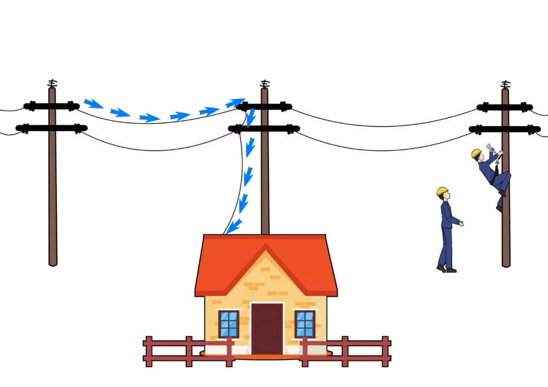 舉例來說,小e的家平時從A線路供電,也有一條備用的B線路可以供電。當A線路需要停電檢修時,電網工作人員就會把小e的家轉交給B線路供電。這樣就在小e家不停電的條件下完成了檢修工作。