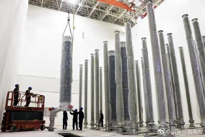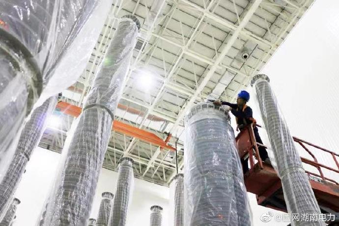 9月18日,湖南送變電公司員工在伏北±500千京換流站工程安裝直流斷路器設備。