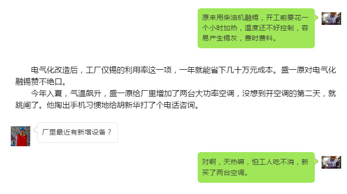上門檢查確認后,胡新華給盛一原安裝了新的空氣開關。得知盛一原現在每個月電費要花五萬余元,胡新華便主動向他介紹了電價新政策,并設計經濟用電的方案。