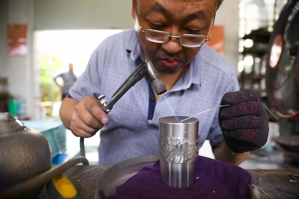 傳統工藝打造一把錫壺需要17道工序,捶打10萬次