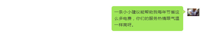 一條小小建議能幫助我每年節省這么多電費,你們的服務熱情跟氣溫一樣高呀。