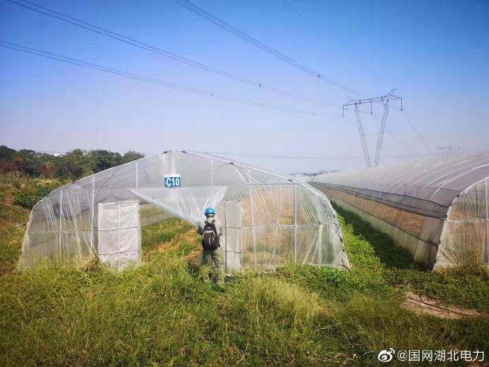 【秋檢巡視忙,主網有保障】自入秋以來,大風、高溫反常天氣時有發生,主網運行防外破工作壓力增大,國網湖北檢修公司鄂西北運維分部巡視人員在超高壓線路附近向農戶宣傳線路防外破知識,并幫助農戶綁扎固定大棚,防止因大棚飄揚纏繞導線造成的外破事故發生,保障主網安全穩定運行!