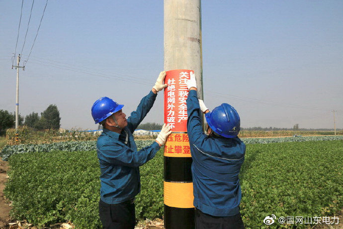 【長假巡檢保供電 秋收宣傳保平安】十一國慶長假,正逢魯西北秋收,雖然是節日,卻成了供電人最忙碌的日子,國網夏津縣供電公司18支巡檢保電小隊一方面開展設備特巡排查隱患,一方面在靠近田間的配電設備上粘貼警示標識,嚴防玉米收割機碰觸拉線、機井通電臺區配電箱,既要保供電,還要保秋收。 ? ????