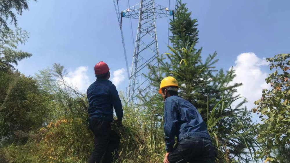 驅車兩個小時才到達此次巡線的起點——陳旌488線48號桿,48號桿塔豎立在遠處的高山上,需再行走約2公里的山間小道才能到達山腳,放眼望去,一片荊棘叢生。“塔基大多處于山嶺高處,塔桿就是目標,路都是我們一步一步‘探’出來的”,王師傅說完便低頭找著所謂的路,一邊用鐮刀砍著雜草一邊前行,不到半山腰,已是滿頭大汗。他笑著說“現(xiàn)在天氣挺給力的,要是夏天走在這山林中間,天氣悶熱、蚊蟲叮咬,還要防著腳下毒蛇出沒,那可難受了。”