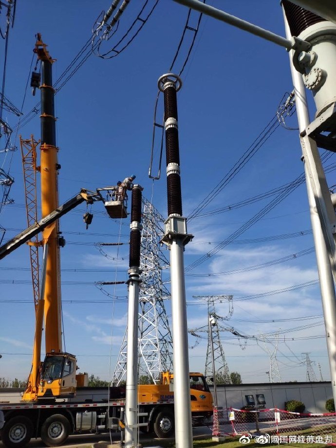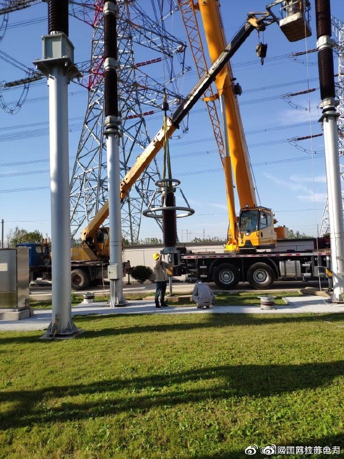 【更換避雷器底座,消除設備安全隱患】10月15日,國網江蘇檢修公司宿遷運維站變電修試班在500千伏鐘吾變按照停電檢修計劃開展避雷器受潮底座更換工作。檢修人員利用起重吊車拆卸受潮隱患底座,將新底座做好密封處理重新安裝,保質保量完成秋檢任務,保障電網安全穩定運行。 ????