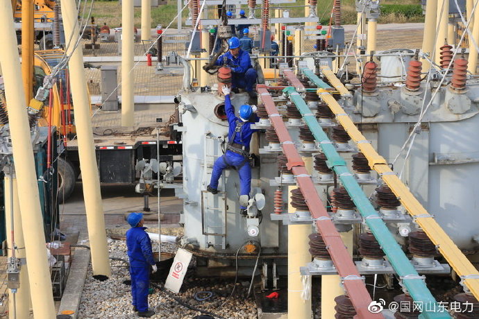 10月15日,國網夏津縣供電公司3支隊伍忙碌在110千伏霍莊變電站設備上,導出并過濾1號主變壓器油,拆除、吊下散熱片等附件, 處理主變壓器滲漏油缺陷,提高設備健康運行水平,確保主設備安全度冬。