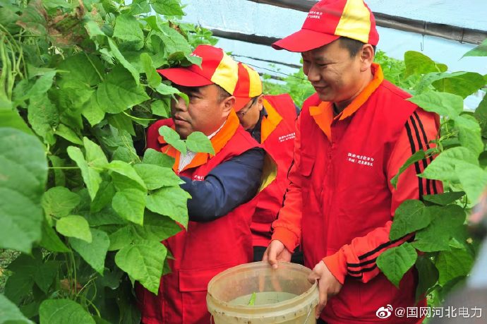 “消費扶貧愛心購,引進食堂幫增收。果蔬綠色無污染,口感香脆把手贊。”10月23日,國網阜城縣供電公司駐鄧屯村幫扶工作隊把村民增收作為幫扶重點,開展了“電力扶貧愛心購”活動,并讓它們走上了咱食堂的餐桌,讓我們的電力職工也品嘗一下咱們自己扶貧助農的愛心果實,得到了大家的一致稱贊。圖為國網阜城縣供電公司駐鄧屯村共產黨員服務隊在扶貧怡樂生態果蔬大棚幫種植戶采摘蔬菜。