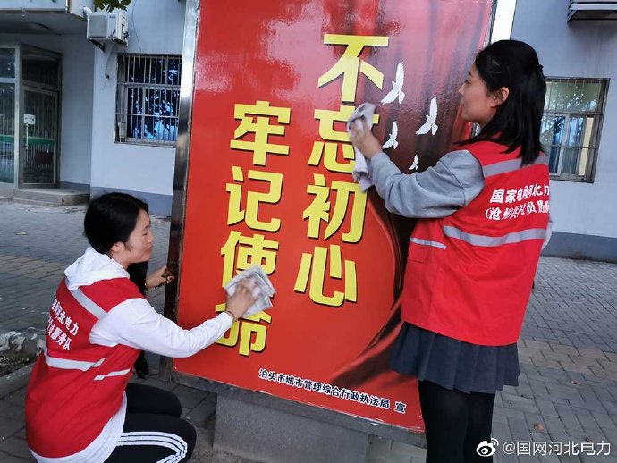 文明在哪里呀,文明在哪里?文明就在我們的點滴行動里。10月23日,國網(wǎng)泊頭市供電公司組織志愿者身體力行創(chuàng)文明城市,不怕臟不怕累,認真擦拭路牌,張貼公益廣告,用實際行動踐行生態(tài)文明建設,彰顯電力之光。