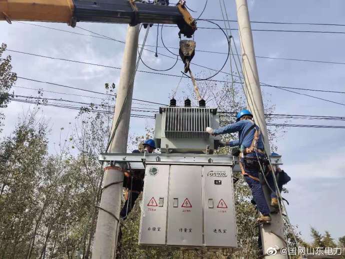10月29日,國網郯城縣供電公司施工人員正協力加快楊集鎮房下村農網升級改造工作,當天完成新裝400千伏安箱變1臺,架設絕緣導線2100米,安裝開關2臺,改造完成后,將為該村980戶村民的冬季取暖提供可靠電力保障。 ????