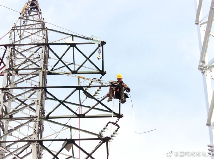 11月21日,在漣源南部三白線35千伏新建工程施工現場,一片熱火朝天,國網婁底供電公司的工作人員正有有序地進行p1號三白線進龍門架、漣三線p63號進龍門架的導地線展放。