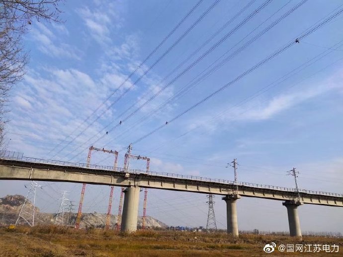 11月26日,江蘇省送變電有限公司的施工人員在完成田灣核電站三期送出工程GBT28-GBT29號跨越段緊線施工后,隨即開展拆網施工。近日入蘇的寒流使得連云港郊外溫度已降至0度。面對冰點,省送施工人員依舊斗志昂揚,高空作業熱火朝天。 ????