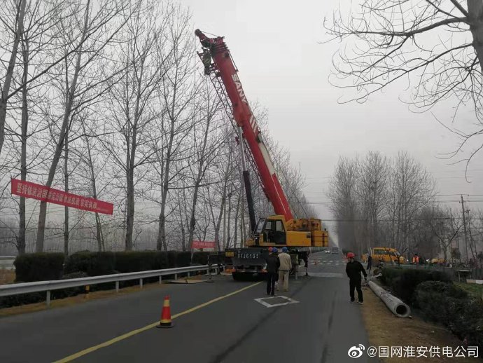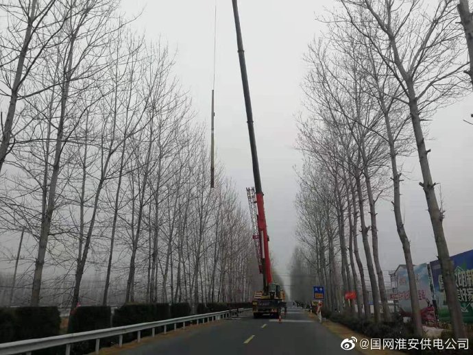 12月20日,國網金湖縣供電公司組織施工隊員,對該縣跨越省道鹽金線的前鋒鎮I0千伏前鋒154線進行改造,利用75噸吊車對跨道路的3根15米電桿進行更換,有效保障線路運行安全和道路交通安全。