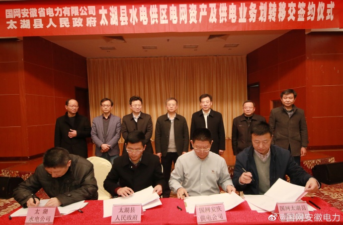 會上,國網太湖縣供電公司與太湖縣水電公司簽署水電供區(qū)電網資產及供電業(yè)務劃轉移交協(xié)議,國網安慶供電公司主要負責人與太湖縣政府主要領導作為見證人簽字。
