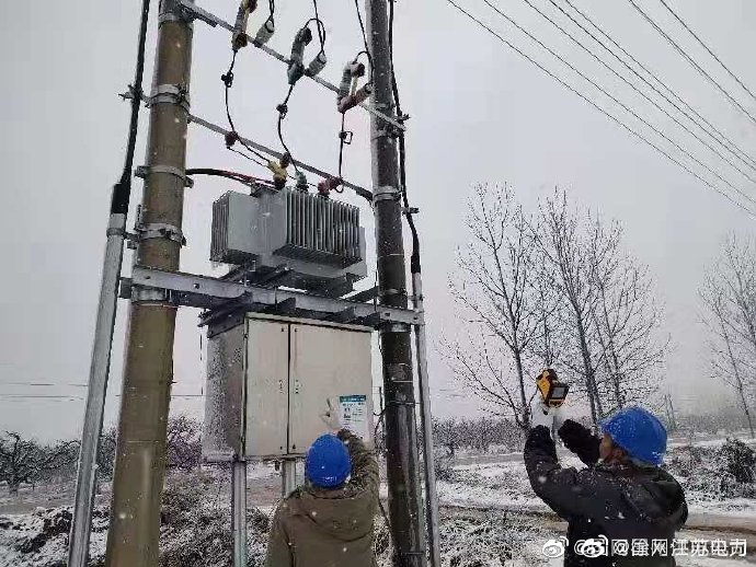 【踏雪特巡測溫保設備安全運行】1月7日,國網豐縣供電公司大沙河供電所員工踏雪對大沙河變10KV線路真空開關、智能開關及綜合變壓器設備開展特巡及紅外線測溫,確保大雪天氣下農配網設施安全可靠運行。