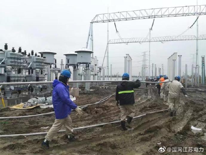 1月10日,常州地區(qū)依舊陰雨連綿,江蘇省送變電有限公司的施工人員依舊在500千伏中吳變的施工現(xiàn)場冒雨戰(zhàn)斗。中吳變的主變構(gòu)架至220千伏構(gòu)架的高跨線有70余米,為將6根高跨線從壓接區(qū)搬運至安裝位置大家齊心協(xié)力、步調(diào)一致共同完成這項工作,為下一步軟母線安裝做好準備。雖然寒風夾雜著雨水,顯得更加寒冷,大家的熱情卻絲毫不減,用實際行動保證工程的按期投運。
