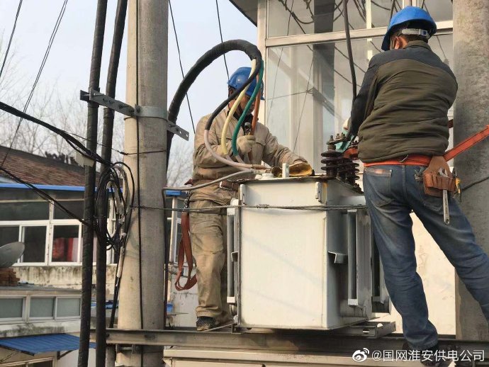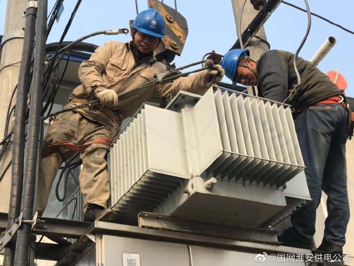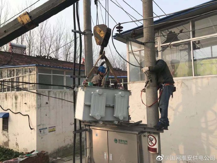 【春節供電有保障】1月12日,淮安淮陰徐溜供電所組織人員對該鎮吳江15變14變兩臺變壓器進行調整,把原來的兩臺100千伏安想辦法更換成400千伏安的,使得在這兩臺吳江小區180余戶的居民新年供電得到有力保障。