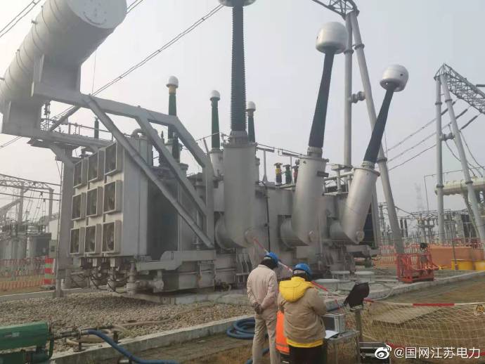 【主變退役 不忘體檢】1月13至14日,江蘇省送變電有限公司特殊試驗(yàn)人員在南通500千伏三官殿變進(jìn)行舊主變暫退役的局部放電試驗(yàn)。原1號主變已經(jīng)為南通電網(wǎng)穩(wěn)定運(yùn)行18年,現(xiàn)已不再滿足用電需求,工作人員不畏嚴(yán)寒,順利完成相關(guān)試驗(yàn) ????