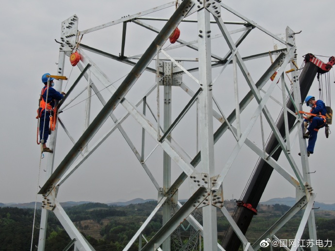 【首基鐵塔順利組立】3月26日,±800千伏雅江線湖南段鐵塔組立首基試點順利實施。江蘇省送變電有限公司施工項目部全體人員第一時間在做好防疫措施的基礎上,加強管理,精心組織,一手抓疫情防控,一手抓試點準備,圓滿完成此次試點任務。此次試點既是湖南段也是整個雅江線工程的首次鐵塔組立試點,試點后工程將進入鐵塔組立階段,為實現2020年12月全線架通的目標打下了良好的基礎。