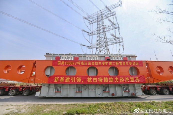 4月3日,在1000千伏特高壓東吳站主變擴建工程現場,重達380噸的首臺變壓器經公路、水運,歷時20天的時間,在交警、公路部門的協同護送下,通過巨型拖板車順利抵達現場。該工程預計6月底竣工投產,屆時將增強蘇南地區電網供電穩定性,緩解蘇南地區電網迎峰度夏供電壓力。
