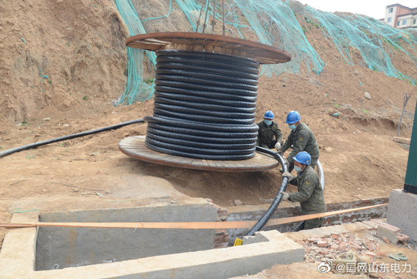 4月6日,國網莒縣供電公司施工人員在10千伏魏家村線展放240平方毫米的高壓電纜。為迎接夏季高負荷用電,滿足錦泰嘉園45棟樓房居民的用電負荷需要,莒縣公司將10千伏錦泰嘉園支線的95平方毫米電纜進行了升級改造。 ????
