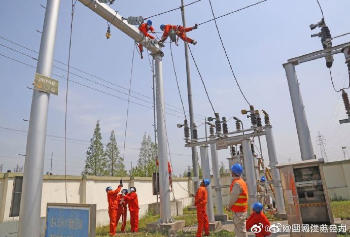 【復工春檢變電設備】4月12日,國網東臺市供電公司變電檢修人員在梁垛鎮35千伏梁垛變電站檢修主變、開關等設備,更換母線絕緣子,保障變電設備安全運行。 ????