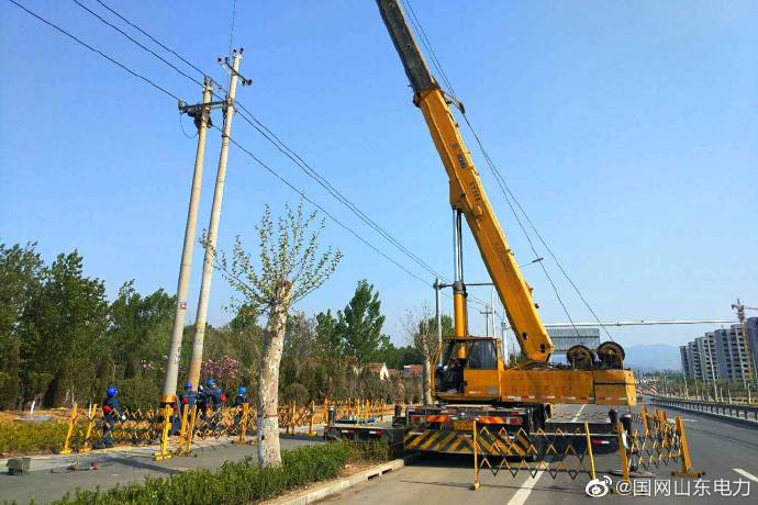 【線路遷移 為政府工程讓路】4月19日,國網淄博供電公司組織施工人員對10千伏華王線王村東支線4基電桿進行整體遷移,為政府重點工程讓路。由于周村區寶山路拓寬,該線路7至10號桿正好處于人行橫道中間,為保障行人安全,美化城市環境,公司對電桿進行了遷移。 ????