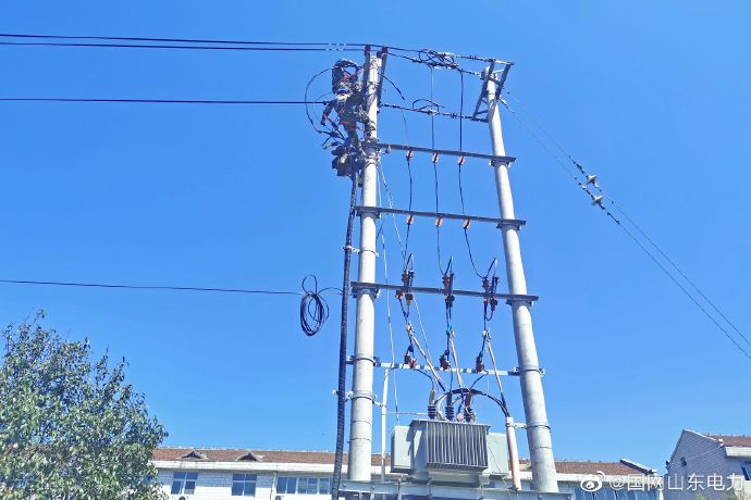 【線路負荷切割 保障可靠運行】4月28日,國網淄博供電公司員工在110千伏國泰變電站新配出的10千伏北旺線01號桿T接出線電纜并安裝隔離刀閘。為保障線路可靠運行,工作人員將原10千伏管莊線周家支線8000千伏安負荷切割至新線路供電,緩解了原線路負荷緊張局面,為電網安全可靠運行提供了保障。 ????