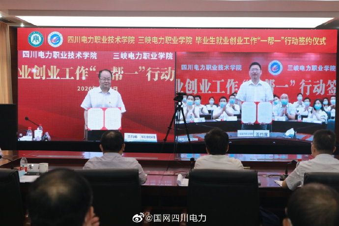 5月26日,國網四川電力技能培訓中心(四川電力職業技術學院)與三峽電力職業學院“云簽約”,啟動就業創業“一幫一”行動。雙方將在人才培養、學科建設、師資隊伍建設等方面加強合作,為服務“穩就業”工作貢獻“四川力量”。據悉,在此次第二批全國與湖北高校就業幫扶行動中,四川電力職業技術學院是國網系統唯一一家,也是四川省內唯一一家支援高校。
