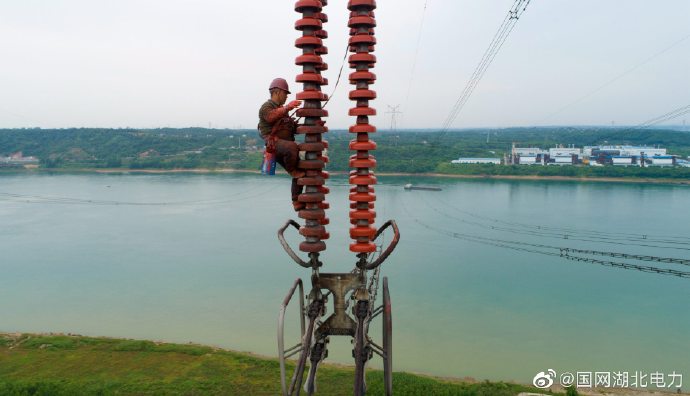 晴日暖風時,高空檢修忙。5月27日,國網湖北檢修公司荊門運維分部檢修人員在宜昌市紅花套鎮500千伏宜興一二回長江大跨越區段,對絕緣子進行PRTV涂料,給其穿上“新衣”提高線路設備的防污能力,保障線路設備穩定運行,確保可靠保電。