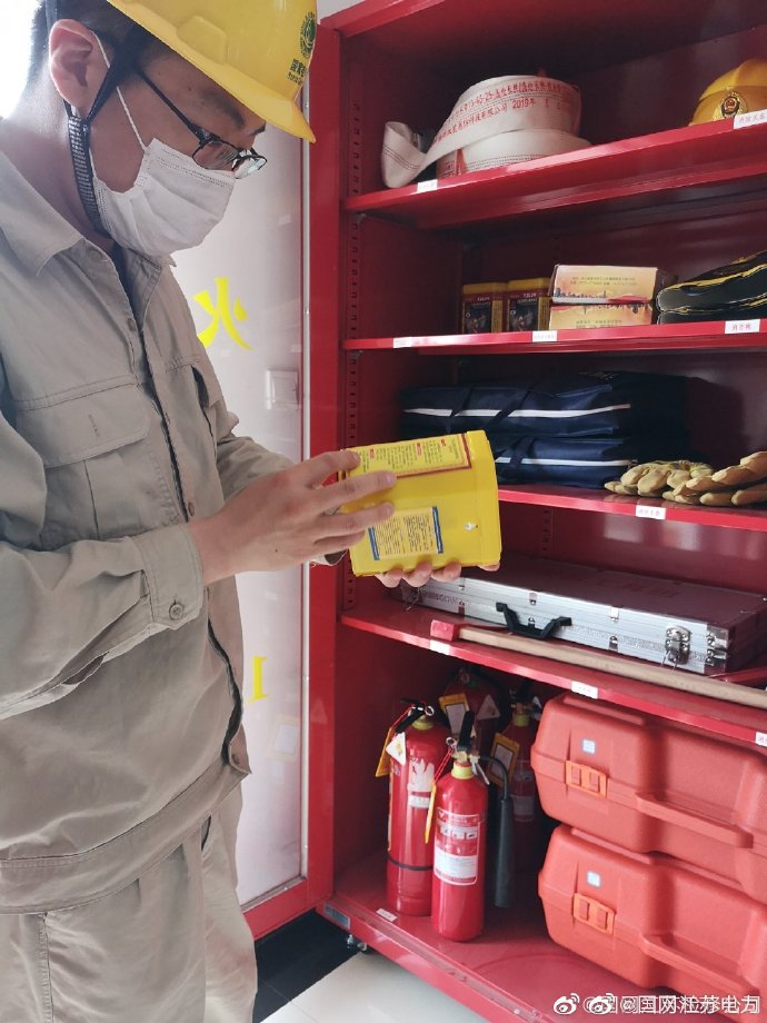 6月6日,國網江蘇檢修公司徐州運維站500千伏姚湖變值班員對微型消防物資進行全面檢查。值班員對照臺賬核對消防物資的種類和數量,仔細檢查每件消防物資的外觀、壓力值、合格期等,確保其功能正常,保障變電站消防安全。 ????