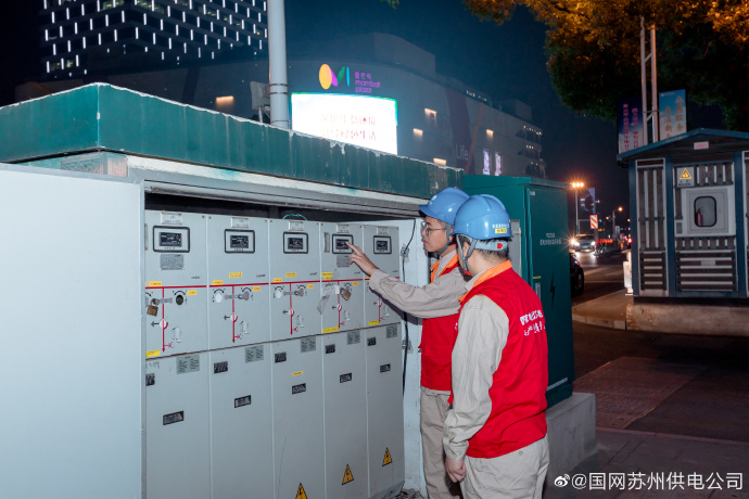 6月8日晚,國網張家港市供電公司工作人員來到楊舍老街、曼巴特購物廣場等商圈,巡視檢查周邊配電設備及電力線路,為商戶夜晚經營提供充足穩定的電力保障,確保城市夜經濟用電安全可靠。