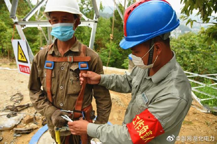 作業人員如何進行安全防護,作業現場如何安全管控?6月15日,國網丹江口市供電公司按照“安全生產月”活動,強化電網基建現場管理,施工負責人在110千伏丁當二回線路施工現場,重點檢查地腳螺栓緊固情況,對登高人員的穿戴勞保用品,正確使用工器具,有隔離防護措施并有專人負責監護等環節上下功夫,并時刻提醒登高人員注意安全,確保安全、文明生產。