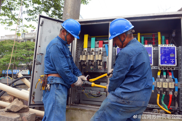 6月23日,國網太倉市供電公司組織40余名電力施工人員在陸渡菜場線路入地改造現場抓緊施工,新上柱上景觀變1臺,箱式變2臺,拆除老舊電桿6基,將原來的架空線路全部改為入地電纜,消除空中“蜘蛛網”,美化市容市貌,助力全國文明城市創建。