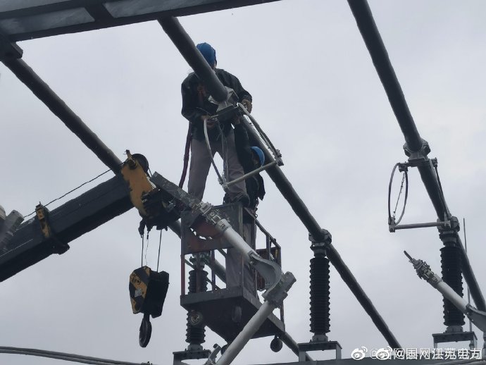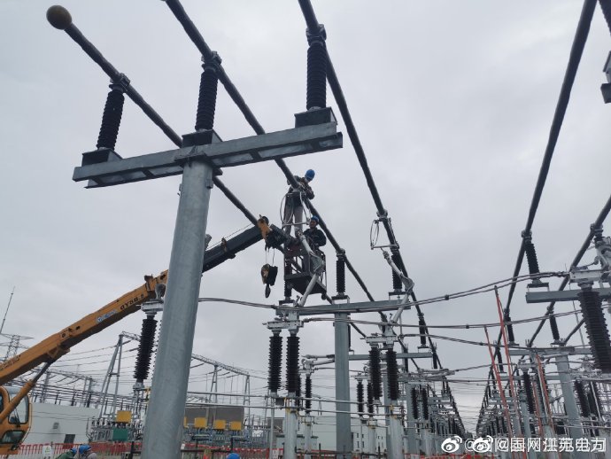 6月27日,國網泰州市姜堰供電公司施工人員來到新街擴建110千伏蔣垛電氣安裝工程,運糧工程電氣安裝現場,冒雨制作110千伏閘刀靜觸頭,安裝調試閘刀高空動靜觸頭,確保工程進度,以滿足迎峰度夏用電。 ????