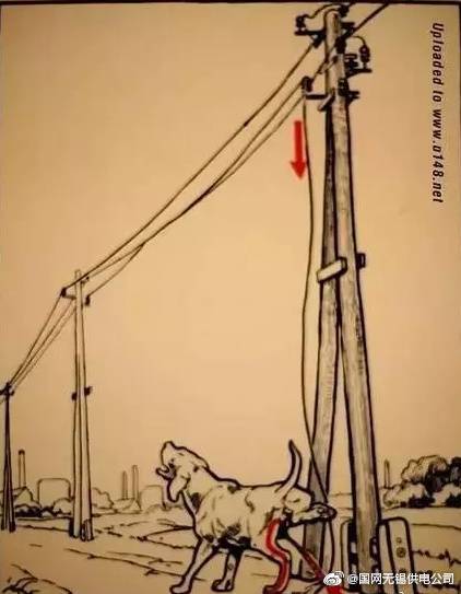 在電線桿下小便 ,這只狗遭殃 ,關鍵是電線掉了下來 ,碰到了小便 ,人可能不會有這種情況,不要隨便用手去碰裸露在外面的電線。