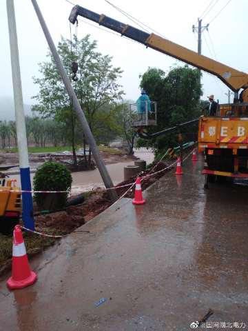 6月27日,宜昌城區及周邊地區普降暴雨。國網宜昌市高新區供電公司搶修隊員在線路巡視中發現,點軍區10千伏監獄線(宜昌監獄專線)3號電桿由于大雨沖刷、基礎滑坡發生傾斜,情況十分危急。隊員們當即與宜昌監獄取得聯系,協助客戶制定停電搶修方案,將傾斜電桿扶正,并對電桿基礎進行培土加固。當日18時58分,全面消除電桿傾倒隱患,確保人民群眾生命財產安全和客戶可靠用電。