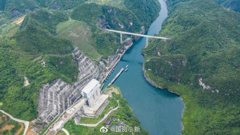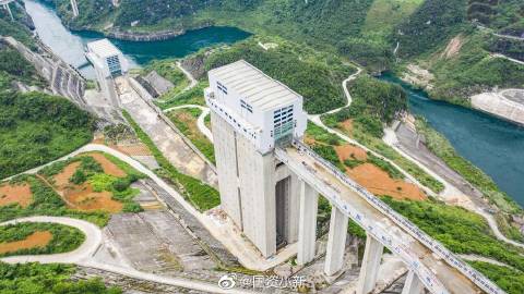 構皮灘水電站通航工程是貴州省重點建設工程,線路總長2306米。工程建成后,500噸級船舶可經由烏江渡碼頭直達重慶。近日,構皮灘水電站通航工程主設備全部安裝完成,進入全面調試階段,計劃于2021年3月投入試運行。九張航拍美圖感受一下水電站的壯美景色.