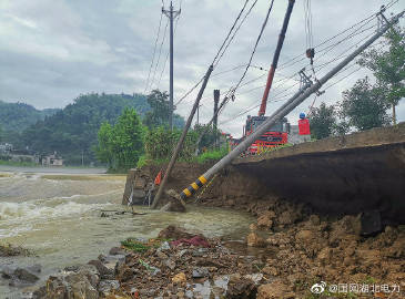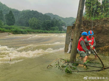 7月6日,崇陽地區暴雨普降,崇陽縣港口鄉油榨村有兩根高壓電桿被河水沖倒,導致油榨村、石嶺村、2500余戶居民停電。國網崇陽縣供電公司10余名“跑山電工”立即出動,在最短時間新立兩根電桿,重新架設兩檔10千伏導線,為村民恢復供電.