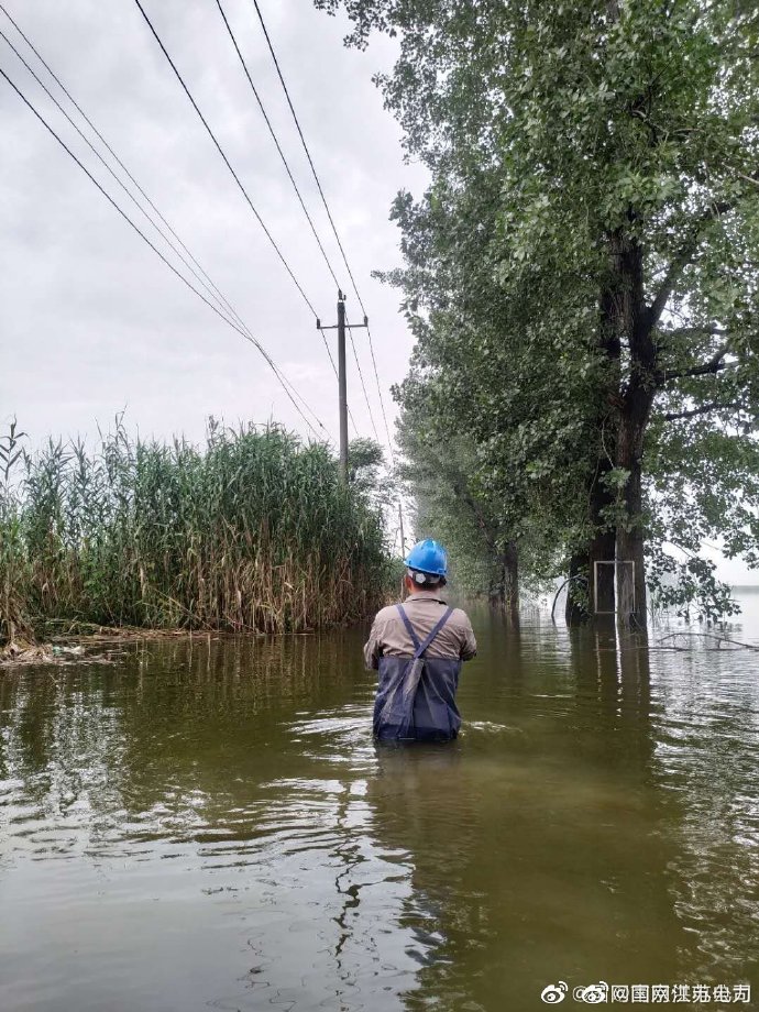7月12日,國網(wǎng)南京市江北新區(qū)供電公司工作人員身穿防水服,對龍袍涉水10千伏農(nóng)場線及其供電設(shè)備進開展全面檢查,重點記錄跟蹤土質(zhì)松軟地區(qū)以及涉水桿塔、桿基基礎(chǔ)情況,確保第一時間消除可能危及線路安全的各類隱患。