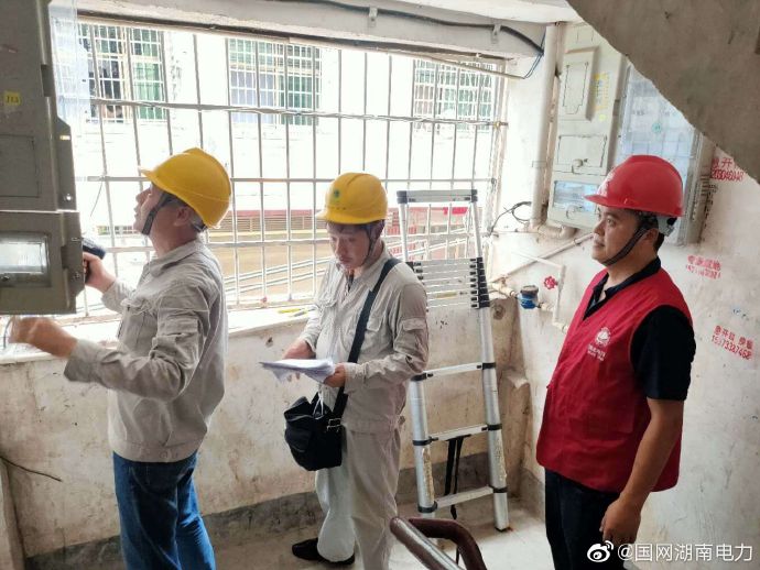 氣溫高、負荷高,家門口的用電檢查不可少。8月11日下午,國網耒陽市供電公司郊區供電所的外勤人員雷小平、譚勛、段宏兵來到耒陽市水東江街道橋頭居委會4組的居民樓內,開展安全用電檢查,并及時處理表計故障,將可靠的供電和優質的服務送到用戶家門口。(彭流久)