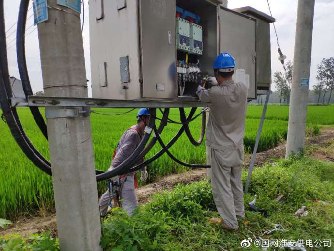 8月12日,秋后高溫持續,國網淮安供電營業部宋集供電所為了滿足用戶用電需求,積極組織施工隊伍對尹莊西配變進行線路改造,新增一條200米400V低壓線路,受到廣大用戶好評! ????